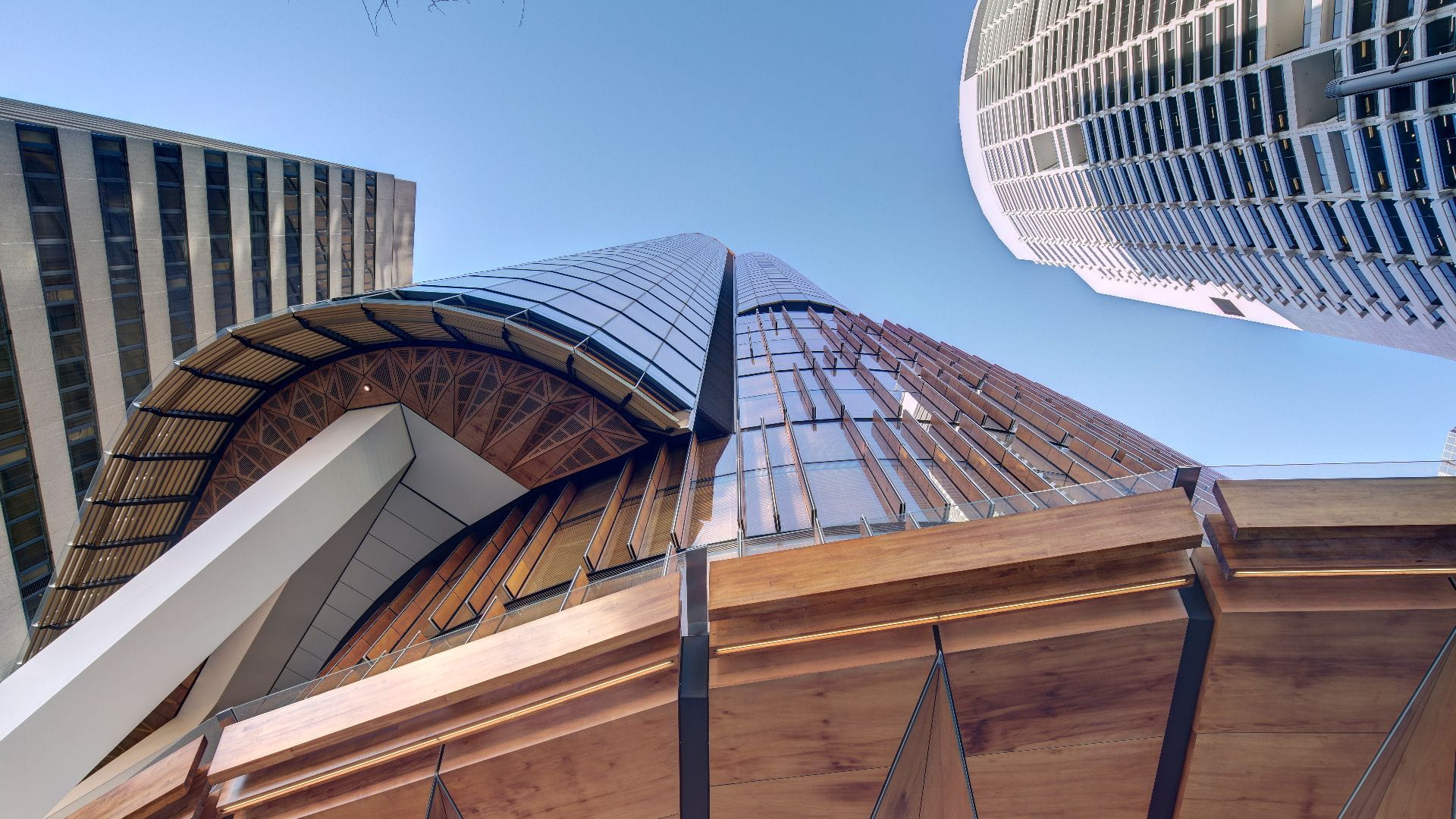 In contrast to the grey, cold forms that dominate the Sydney skyline, EY centre is defined by its warmth – achieved through the use of natural timber, sandstone and clear glass.